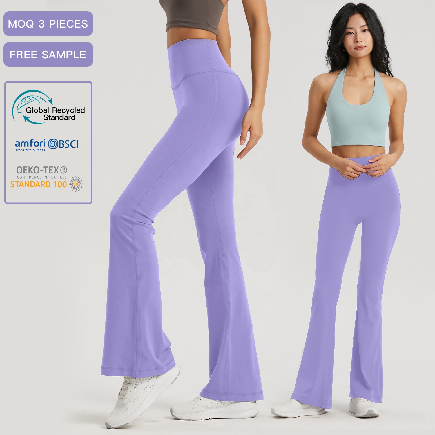 Yüksek bel Flared tayt dört yönlü streç toptan geniş bacak spor Yoga sıkı pantolon