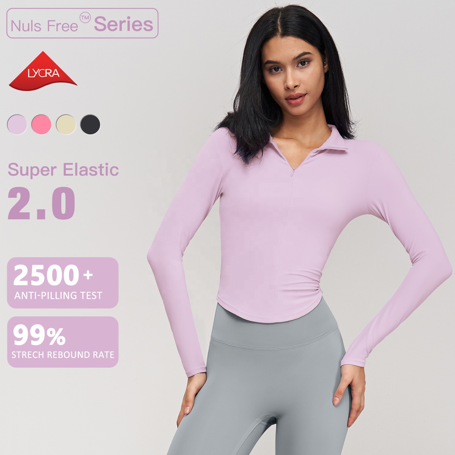 Çeyrek fermuar Yoga hızlı kuru Tops özel Logo spor uzun kollu spor t-shirt 80 naylon 20Spandex